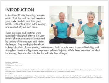While sitting in a chair, Seniors can learn all of the stretches & exercises needed to maintain circulation, muscle mass, flexibility, and immune function - all in the privacy of their own home. Sit To Get Fit also includes motivational messages and nutrition tips for a healthy mind, body & spirit. This is a complete step by step exercise program, printed in an easy to read larger font size and illustrated examples to follow.